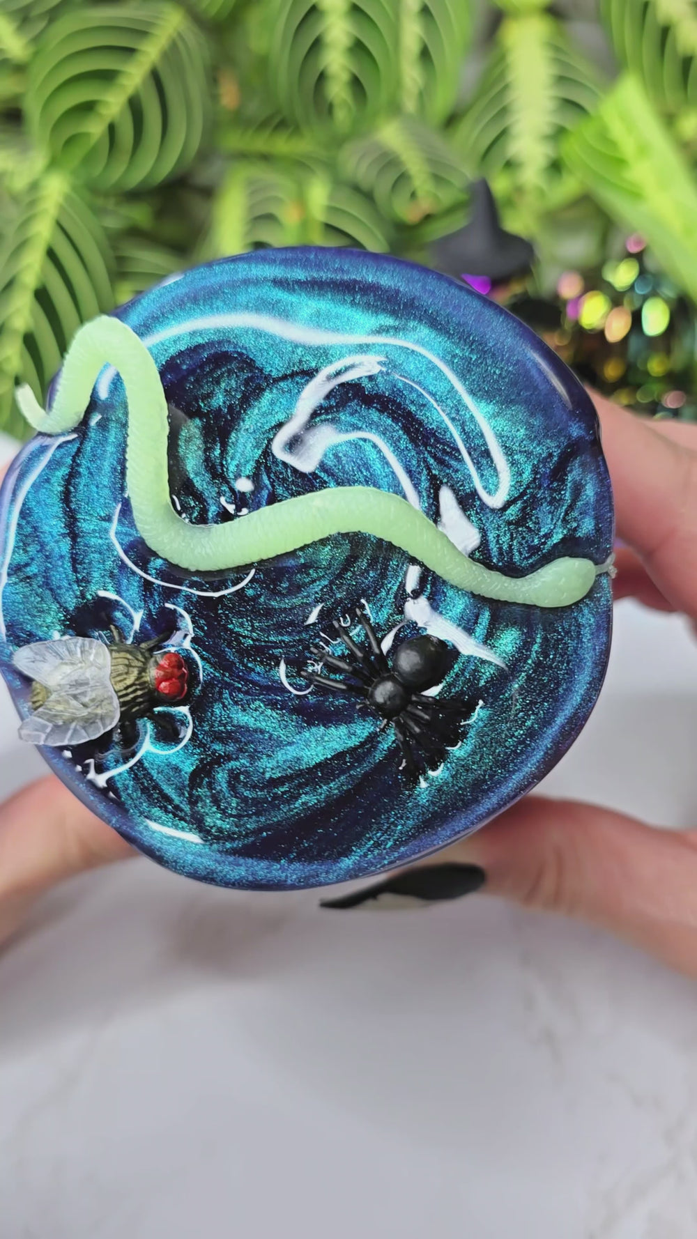 Creepy Crawlers is one of the prettiest slimes I've ever made! The pigment is color shifting green to purple to blue. Gorgeous! You'll love how this clear is not tacky like others. It's thick and has the best bubble pops. Comes with THREE charms: a glow in the dark snake, a fly and a little spider. They're fun to hide in the slime and find them over and over!