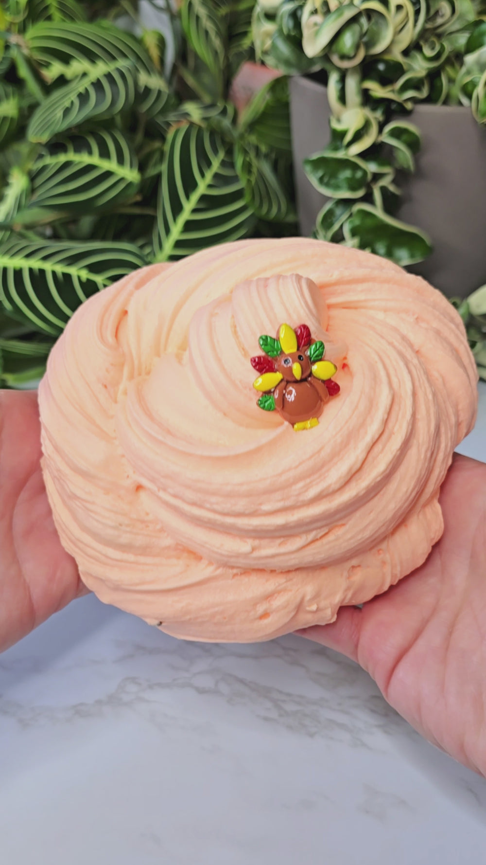 Happy Thanksgiving is made with our butter mallow texture. It's so soft and inflates into sizzly goodness! It's marbled orange and white and is scented orange cream cupcake. So yummy! This is a great texture for all ages and one of the best to just sit back and relax with.