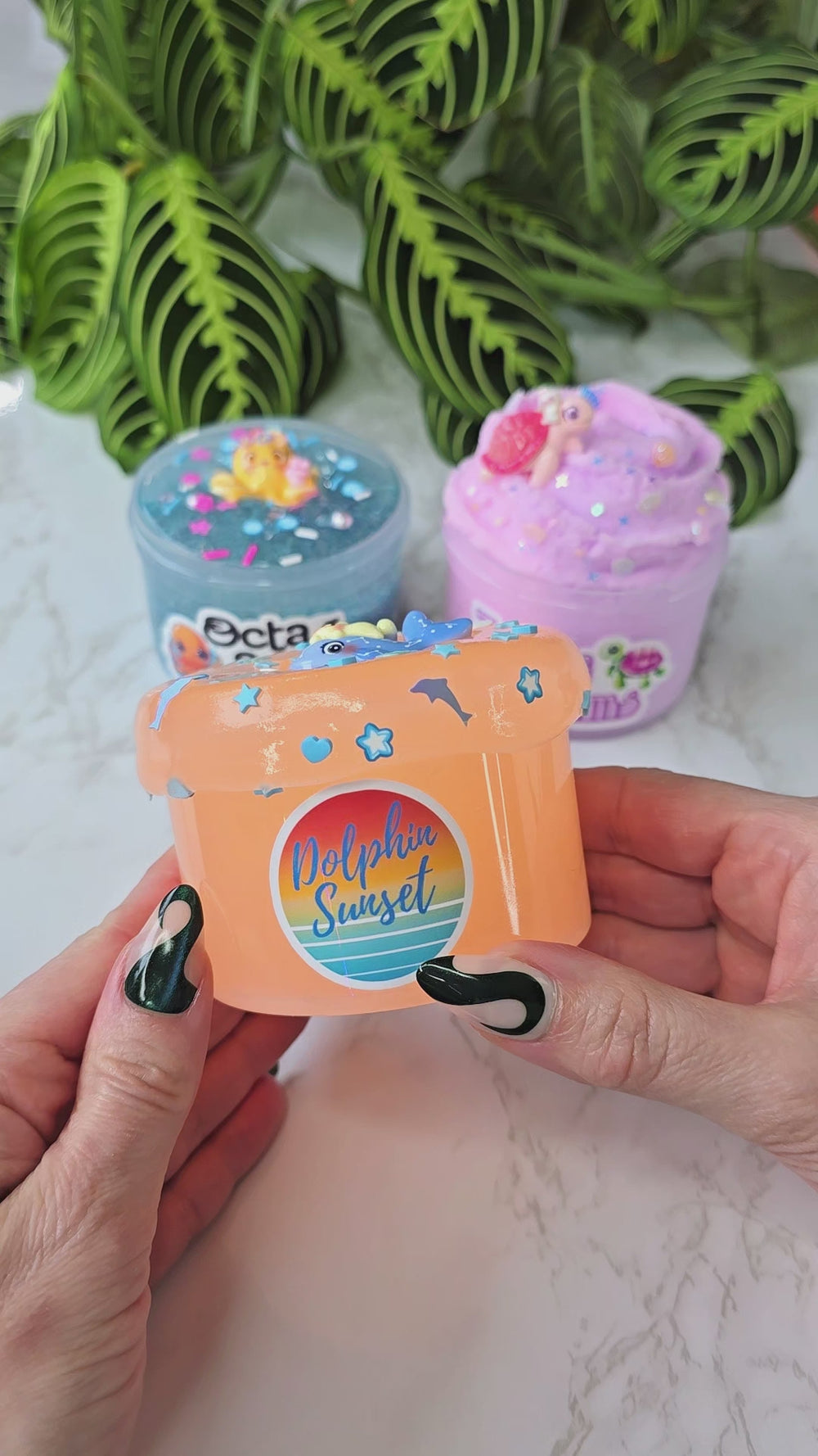 Dolphin Sunset is the brightest orange slime you've ever seen! It's made with our juicy jelly recipe that inflates without getting tacky! You'll love the contrasting beautiful blue sprinkle mix that includes dolphin glitter! Also comes with the cutest dolphin charm you've ever seen!