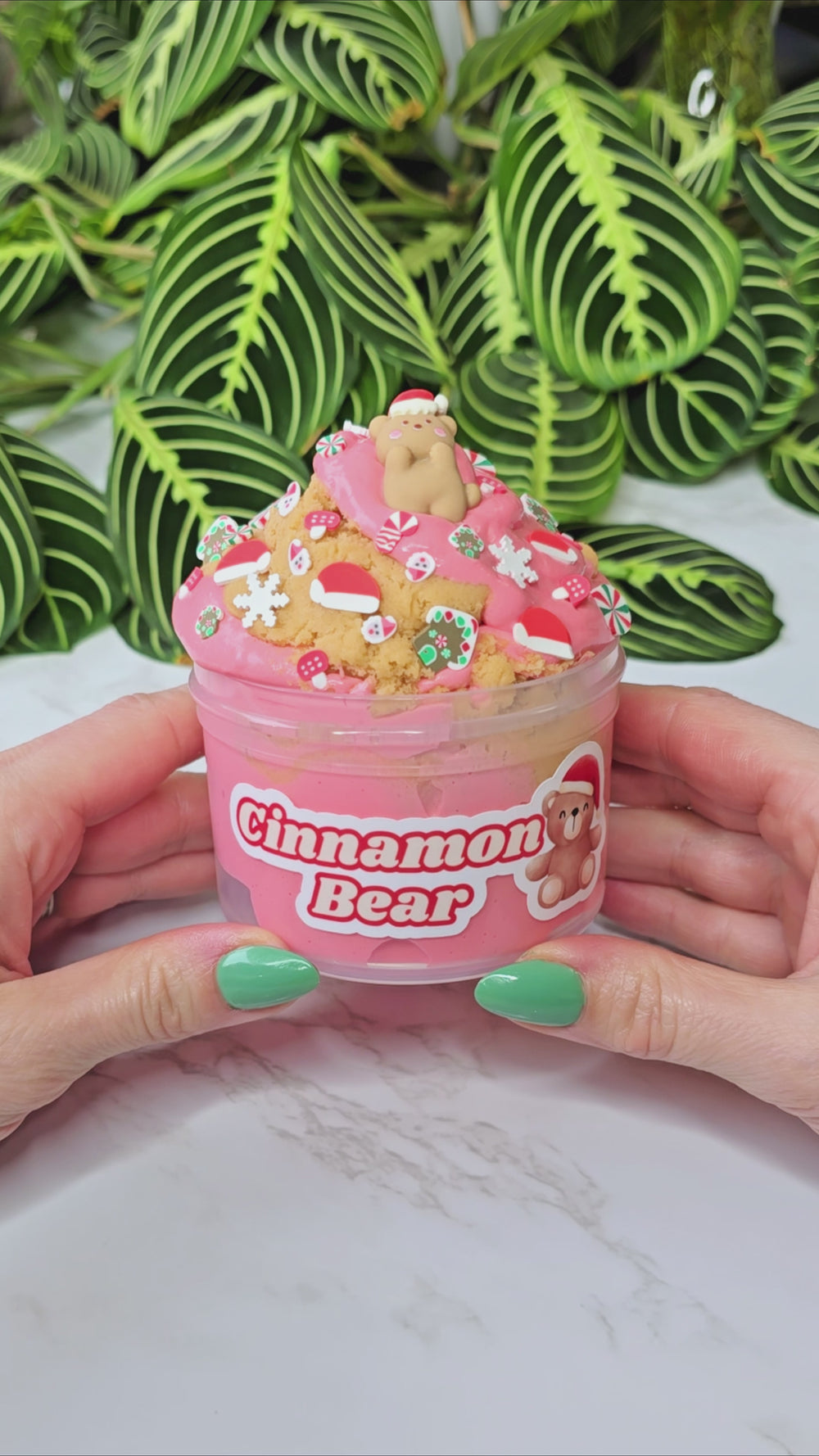 Cinnamon Bear is a new texture for the shop! It's a half Mallow Butter and half Cloud slime. It comes with the cutest holiday sprinkle mix that even has little mushrooms! they're so cute! The end texture turns into a doughy sizzly cloud dough.