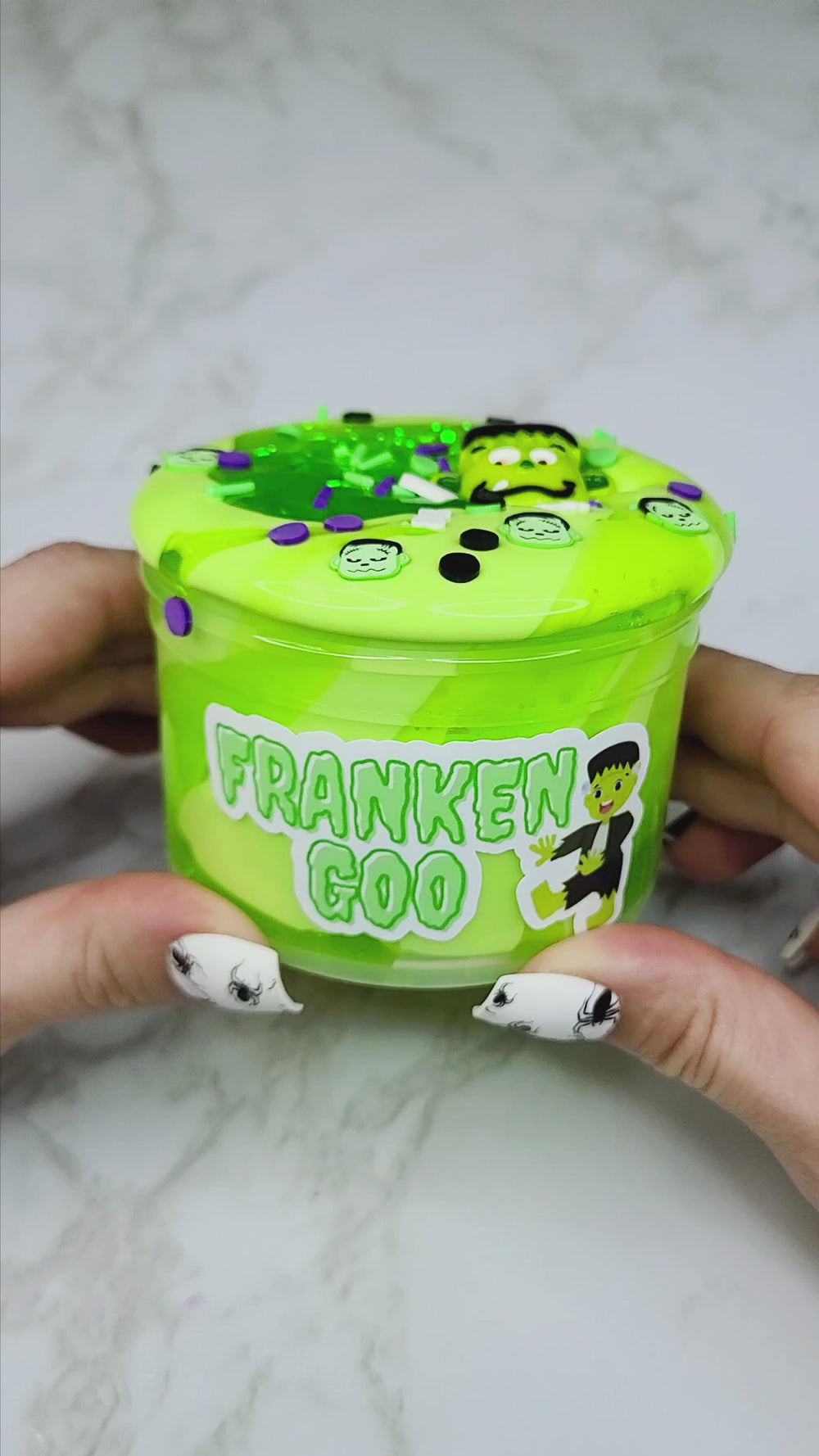 Franken Goo is made with our best thick and glossy recipe! It's super thick, ultra glossy and gives the best bubble pops. It also comes with a glitter 1oz glittery green slime. Keep it separate or mix it together for a really cute gooey look!