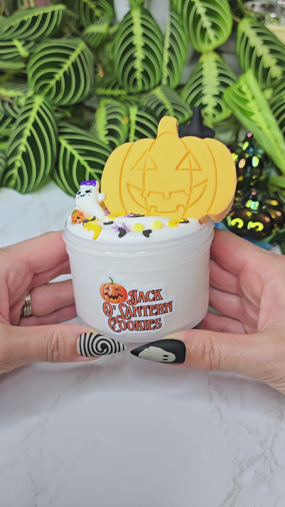 Jack O' Lantern Cookies is a new Halloween DIY! Each pumpkin cookie has a different face and they were so fun to make! The base is a rich butter slime scented Pumpkin bourbon Donuts. Once combined you'll have the sizzliest butter!